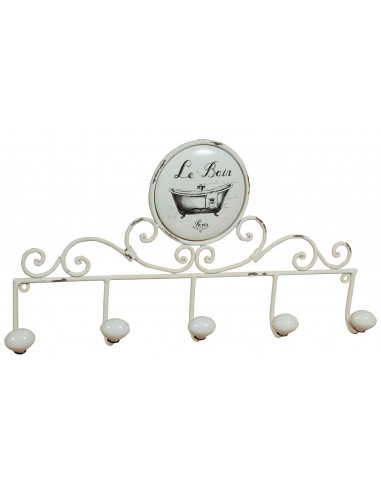 CONTATTACIAppendino 48x6x26 cm con 5 pomelli in porcellana realizzato in ferro battuto con placca in porcellana decorata “Le Bain”.Tutte le misure si riferiscono all’ingombro massimo dell’articolo.