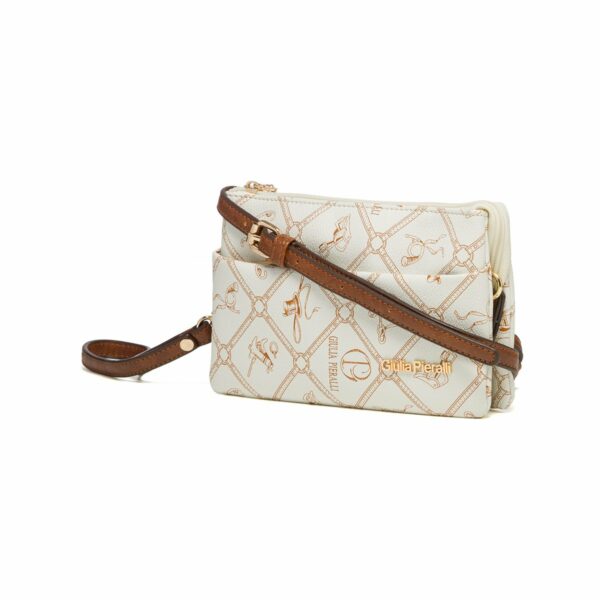 CONTATTACIBorsa a tracolla Giulia Pieralli in similpelle colore bianco con tracolla rimovibile e regolabile, tasca esterna, interno foderato, numerose tasche interne, chiusura con zip e logo in rilievo. Misure: lunghezza 21 cm, altezza 13 cm, profondità 11 cm, tracolla 122 cm.