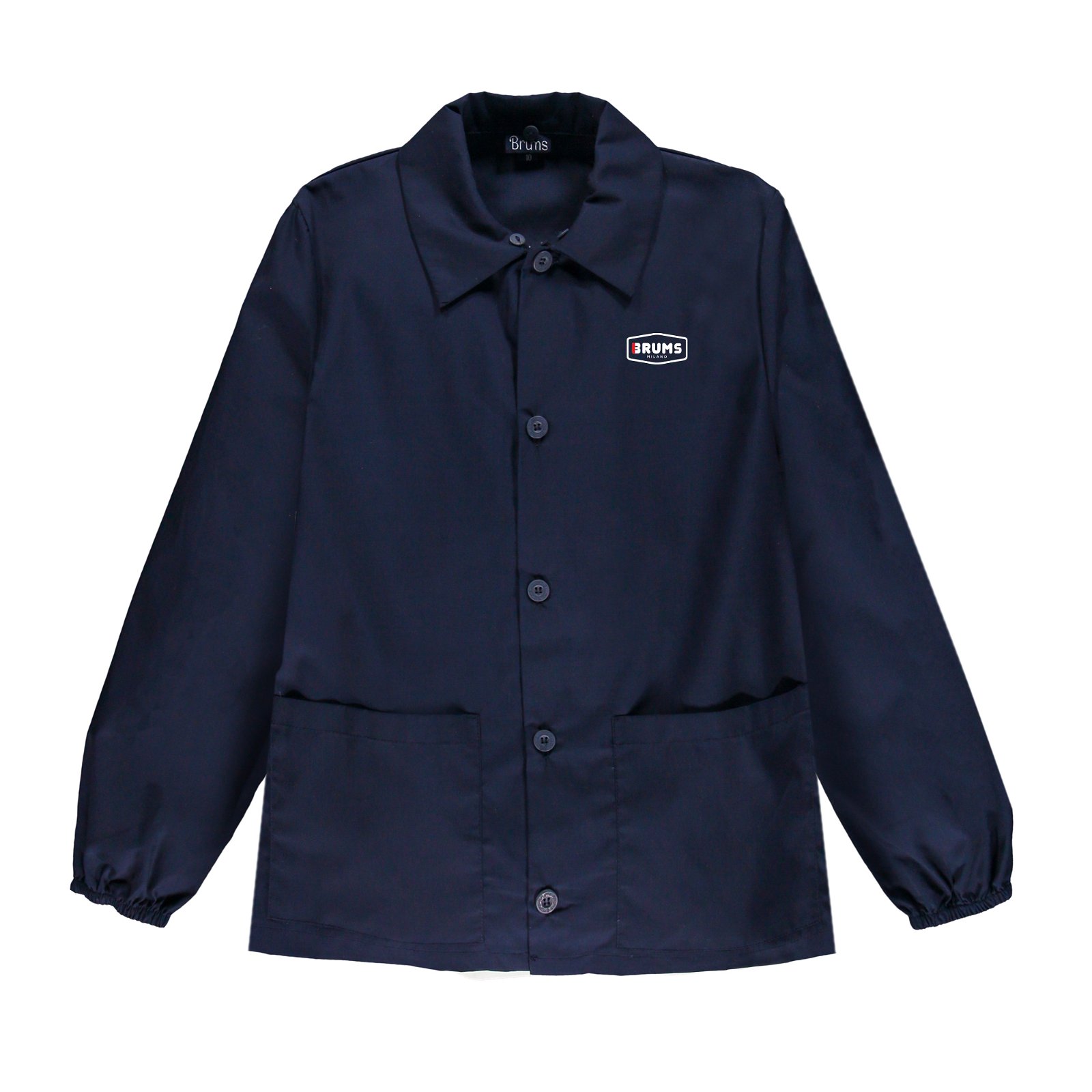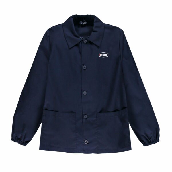 CONTATTACITessuto principale: Misto cotoneApertura frontale con bottoniColletto in tintaElastico ai polsiDue tasche applicate davantiRicamo logo Brums Stiro facile