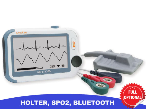 CONTATTACIApperecchio per il monitoraggio della salute – Check Me pro – Holter Ecg – BluetoothVersione Full optional:La versione full optional del Check Me Pro, oltre alle funzioni della versione classica dispone di Holter, Spo2 e BluetoothECG- utilizzabile con e senza cavi- frequenza di campionamento di 500 Hz e ampia larghezza di banda- possibilità di riprodurre 30/60 s di tracce ECG- algoritmo ECG professionale per fornire la frequenza cardiaca, durata QRS, segmento ST, intervallo QT/QTC e analisi del ritmoECG holter- facile da indossare e da usare- registra continuamente l’ECG per 24 ore- permette di controllare il report e report del tracciato ECG su app o PC- il report comprende non solo il ritmo e la frequenza cardiaca, ma anche il parametro HRV (variabilità del ritmo cardiaco)- il report holter comprensivo di tracciato ECG può essere condiviso in cloud, stampato e salvato come PDFSpo2- utilizzabile con o senza cavi- misura la saturazione dell’ossigeno la pulsazioneMonitor del sonno- monitor SpO2 per OSA (apnea ostruttiva del sonno)- registra e traccia SpO2 e frequenza cardiaca fino a 10 ore- app mobile per controllare nel dettaglio i cambiamenti di SpO2Monitoraggio pressione sanguigna tramite bluetooth (richiede il codice 35188)- permette di gestire tutti i dati vitaliTemperatura – Sensore di temperatura a infrarossi integrato- misurazione rapida e ad elevata precisione- sicuro e confortevole, evita di dover svegliare il bambino mentre dormeContapassi- calcola accuratamente i passi, le calorie e la quantità di grassi bruciati- Sensore smart 3D ad alta precisione integratoAPP – supporta iOS e Android- bluetooth integrato, tutti i dati possono essere esportati da dispositivo al telefono / tablet- riduce notevolmente la frequenza delle visite in ospedale, e i costi che ne derivano grazie alla condivisione dei risultati con il medicoBrowser per PC- software di gestione dei dati medici- dati utente, profilo utente, letture e forma d’onda possono essere esportati da checkme al browser tramite USB