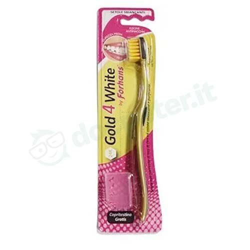 CONTATTACILo spazzolino Forhans Gold 4 White svolge un’azione antiplacca grazie alle setole con ioni di oro che purificano le aree trattate del cavo orale.