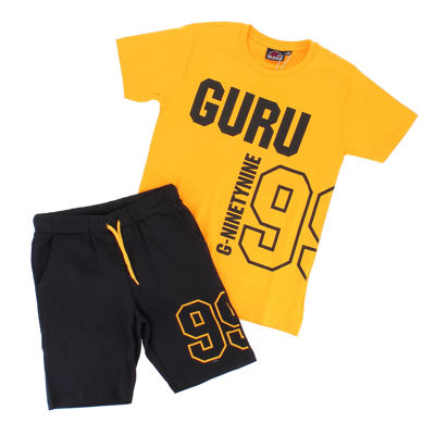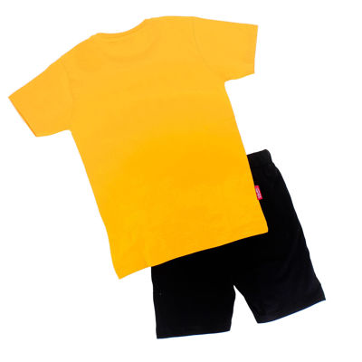 DETTAGLIO: COMPLETINO BIMBO IN JERSEY CON STAMPA/LOGO SUL DAVANTI. BERMUDA CON ELASTICO E COULISSE IN VITA.