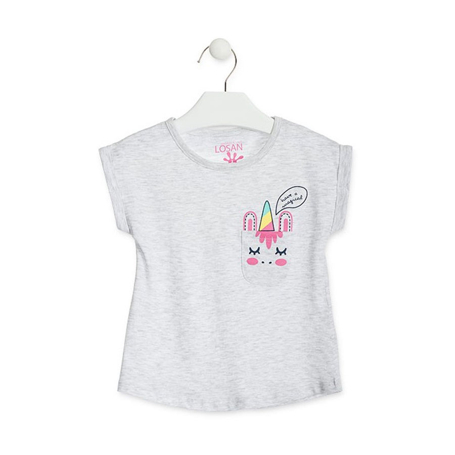 CONTATTACIMaglietta di colore grigio chiaro con il taschino a sinistra sul petto che rappresenta con unicorno.