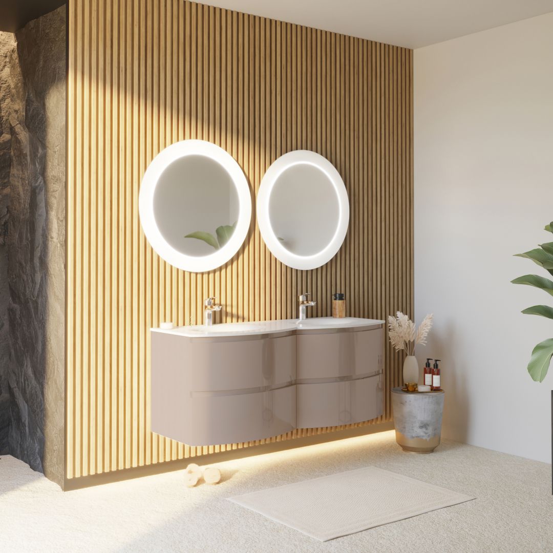 CONTATTACIMOBILE BAGNO SOSPESO DA 140 CM CON FRONTALE CURVO CAPPUCCINO E SPECCHI A LED