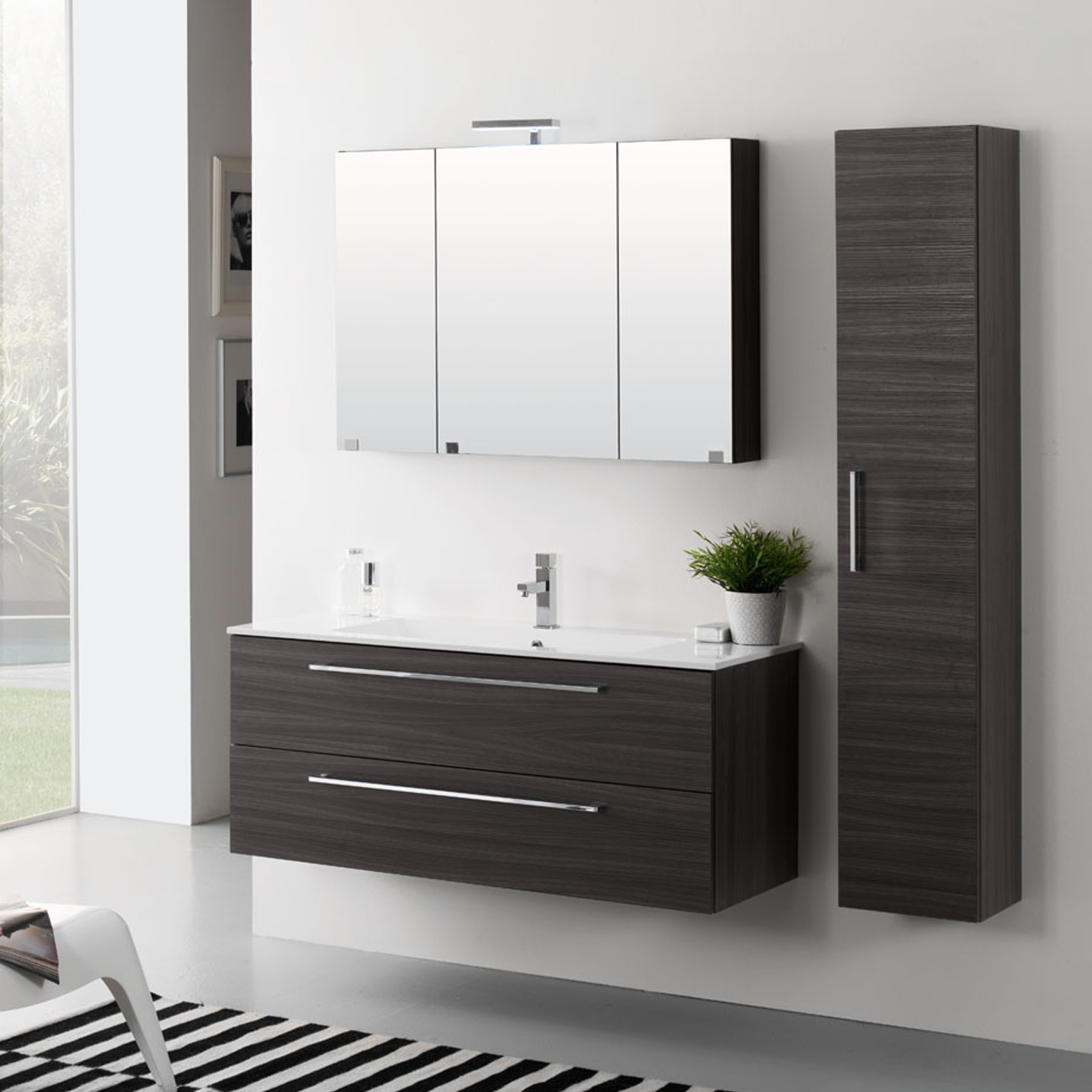 CONTATTACIRaffinato mobile bagno sospeso Maranello 19 in palissandro con specchio contenitore a 3 ante illuminate a led