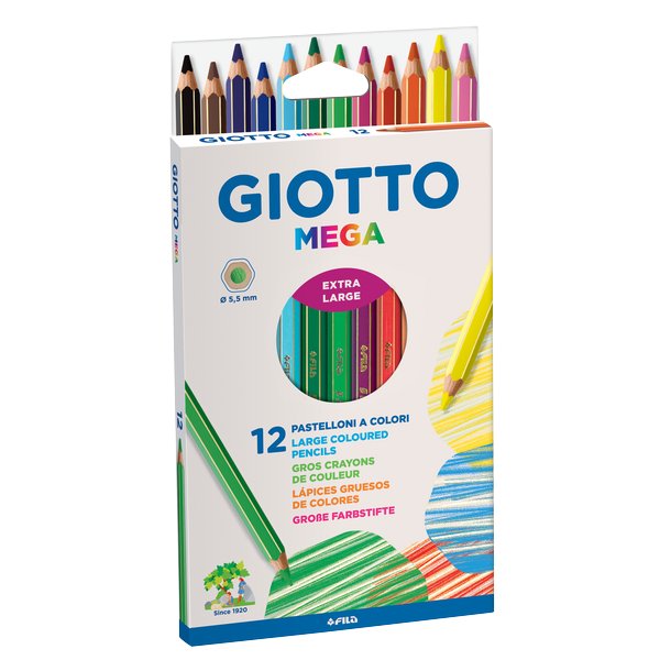 CONTATTACIPastello esagonale lunghezza 18 cm, verniciato nel colore della mina con spigoli dorati. La mina gigante e super resistente di queste matite colorate ha diametro 5,5 mm. Confezione da 6 colori standard (nero, marrone, rosso, giallo, verde, azzurro) + 1 argento ed 1 oro. Codice: 225600