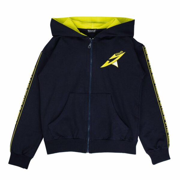 CONTATTACIPraticità e stile con questa felpa bambino firmata People saranno le parole d’ordine del suo outfit. Felpa con cappuccioInterno cappiccio giallo Chiusura frontale con zipTinta unita blu scuro Tasche frontaliBande con scritte gialle lungo le manicheStampa gialla nella parte frontalePolsini e parte inferiore a costinePeople è il marchio di abbigliamento pensato per bambini alla ricerca di capi dal design semplice, ma all’avanguardia per un look innovativo e casual.