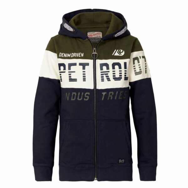 CONTATTACIFelpa tricolor 100% CotoneApertura con zip sul davantiMaxi stampa Petrol industries sul davantiTasche a marsupio davantiCappuccio con fettuccia, interno di colore verde in contrastoFondo e polsini rinforzatiPetrol Industries è un marchio olandese con più di 25 anni di esperienza nel mondo dell’abbigliamento. Anche nei prodotti per bambini troviamo un’elevata attenzione per i dettagli per la realizzazione di capi dal design iconografico e ispirato ai classici americani.
