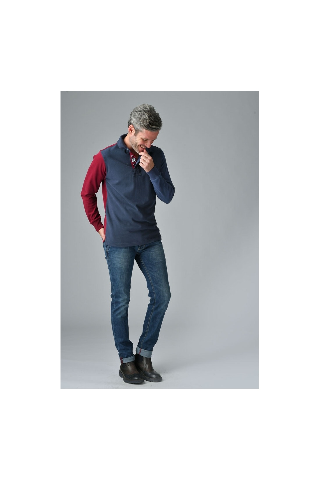Polo uomo sport a tre colori con inserti a contrasto e bandierina patch sul canolo bottoni