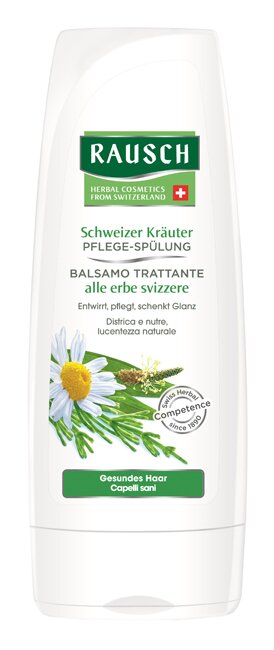 CONTATTACIRausch Balsamo Trattante alle Erbe Svizzere, con preziosi estratti di fiori di camomilla svizzera, equiseto e piantaggine, districa all’istate garantendo un’ottima pettinabilità, morbidezza e lucentezza.