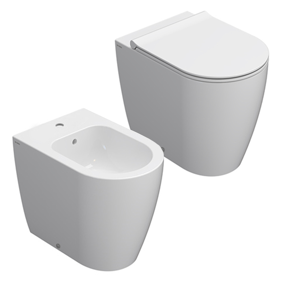 CONTATTACINuovissimi sanitari filomuro senza brida Ceramica Globo modello Mode da cm 53 Wc con scarico Multi, bidet e sedile chiusura rallentata soft close