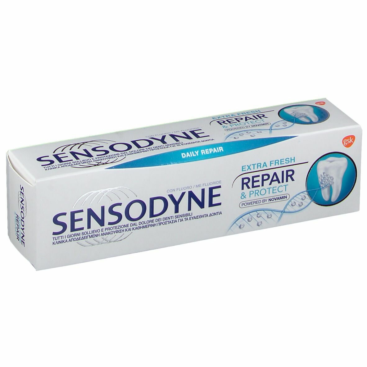 CONTATTACISensodyne Extra Fresh dentifricio aiuta a riparare e proteggere le aree più vulnerabili dei denti formando una barriera protettiva resistente in modo tale prevenire la comparsa delle carie e donare sollievo dalla sensibilità dentale.