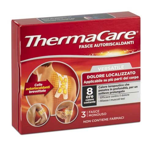 CONTATTACIThermacare versatile fascia 3 pezzi, prodotto da Angelini (a.c.r.a.f.) spa, è un dispositivo medico consigliato per donare sollievo in caso di dolori muscolari sia localizzati che diffusi.
