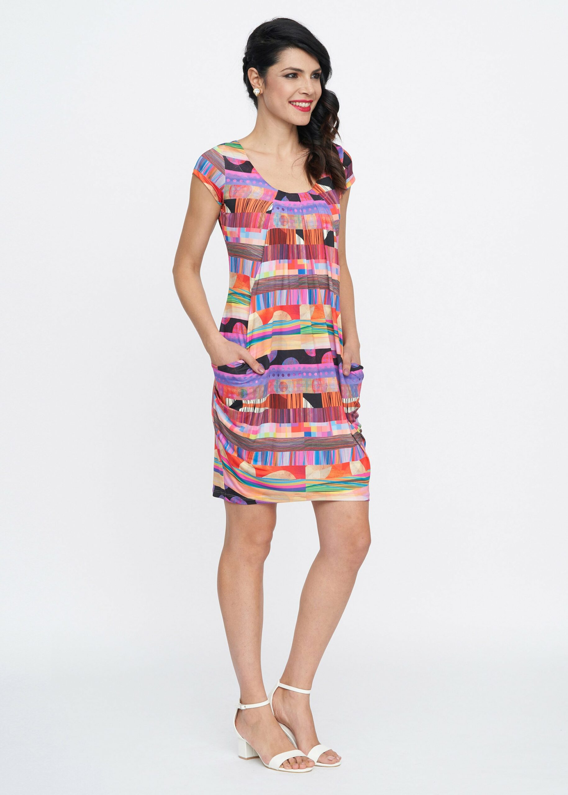 CONTATTACIStretch and printed polyester dress with pockets. Round neck. Comfortable fitting. Abstract pattern.