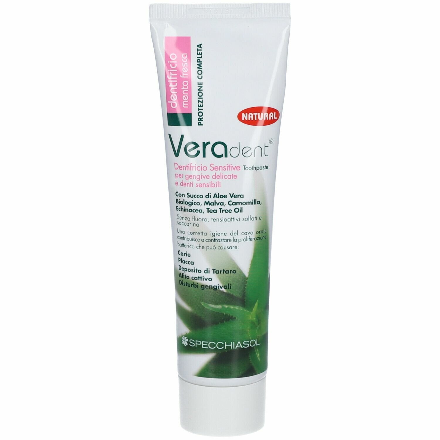 CONTATTACIVeradent sensitive 100 ml, prodotto da Specchiasol srl, è un prodotto parafarmaco consigliato per l’igiene dentale.