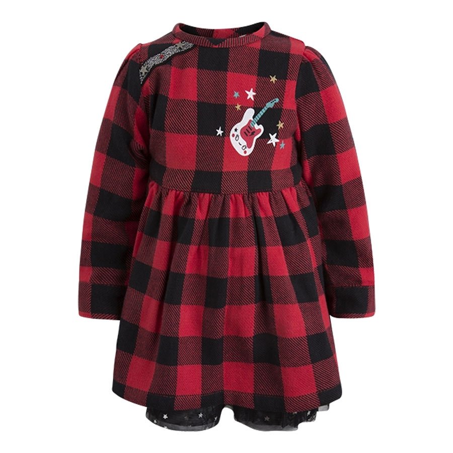 CONTATTACIIl vestito in flanella No Rules è un elegante e alla moda vestito con gonna e maniche lunghe a scacchi rossi e neri completato con una striscia argentata sulla spalla e delle simpatiche stampe.