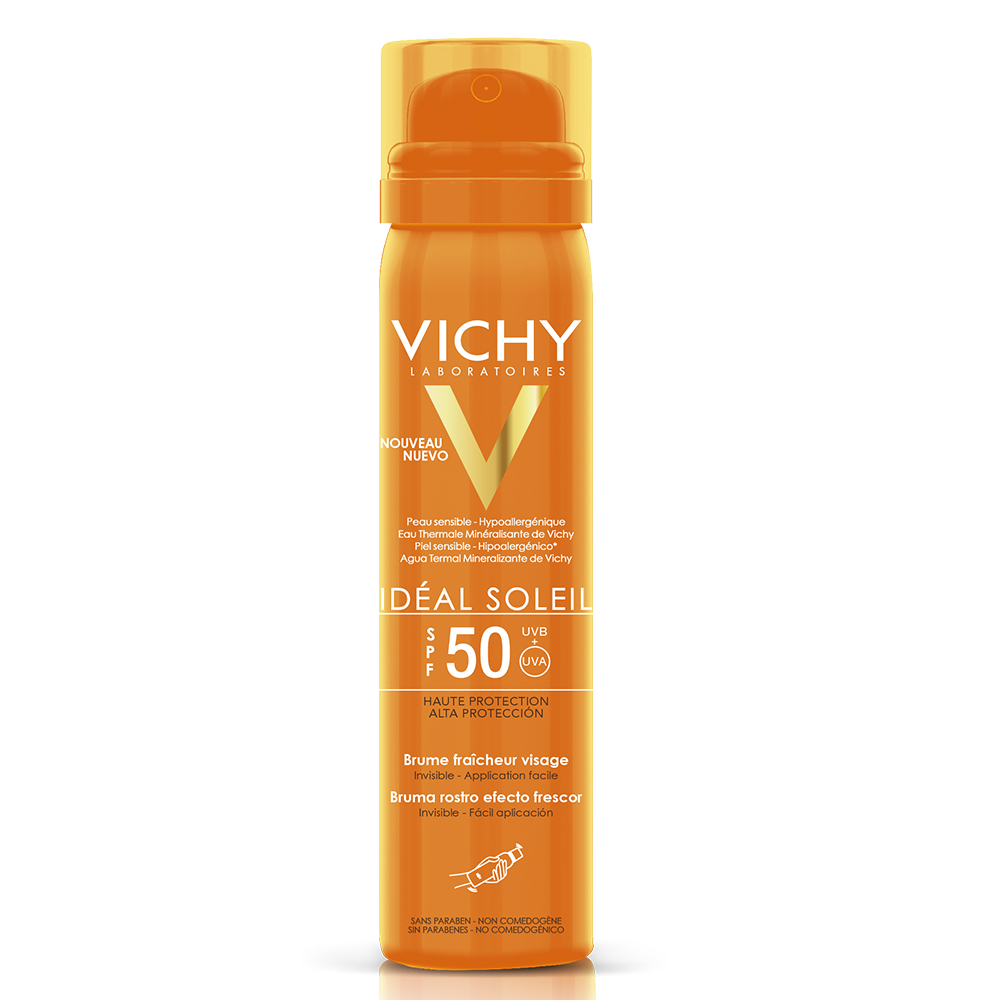 CONTATTACIVichy Idéal Soleil Spray Viso Invisibile SPF50 Lo spray viso invisibile è la protezione solare in grado di difendere dai danni dei raggi UVA e UVB e di combattere lo stress ossidativo indotto dalle radiazioni solari. La formulazione con Baicalina svolge un azione anti-ossidante che contrasta i radicali liberi e aiuta a combattere l invecchiamento prematuro della pelle.