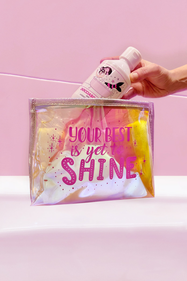 CONTATTACIPochette olografica con bordo argentato, pratica e capiente. L’accessorio indispensabile per ogni Fagiana,Your best is yet to shine!